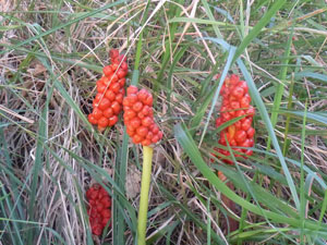 ![]() Der Aronstab ist weder lauwarm noch zu stark, sondern er hat gleichmäßige und maßvolle Wärme, wie die Sonne nach dem Morgenrot angenehme Wärme hält und auch hat, wie (auch) der Tau im Sommer vor Tagesanbruch angenehm ist und daher zu allem gebogen werden kann wie ein angenehmer Mann, der sowohl Gefahren ertragen kann als auch das Gedeihen richtig besitzt. Aber auch ein Mensch, der ein schleimiges Fieber im Magen hat, aus dem verschiedenartiger Schüttelfrost erwächst, der koche die Wurzel des Aronstabs in reinem Wein und dann lasse er es abkühlen und dann tauche er einen erhitzten Stahl in diesen Wein und er wärme ihn so wieder und so warm trinke er dies und es nimmt den Schleim, der in seinem Magen ist, (und) das Fieber von ihm weg wie das Feuer den Schnee zum Schmelzen bringt. Und ein Mensch, in dem die Melancholie wächst, der hat ein finsteres Gemüt und ist immer traurig. Und dieser trinke oft den Wein mit der gekochten Aronwurzel und sie mindert die Melancholie in ihm, das heißt sie verschwindet, wie auch das Fieber. |