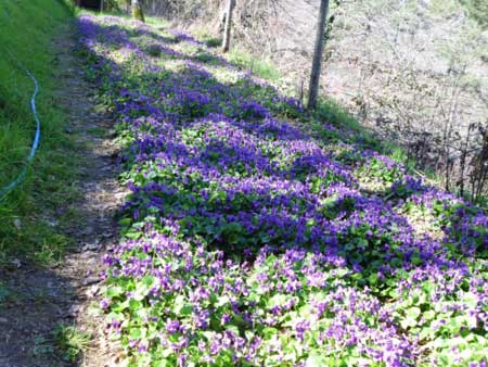 D - Kräuterkur bei Melancholie      ![]() a) Veilchen 1 ...(A1) Das Veilchen ist zwischen warm und kalt. Aber es ist doch kalt und wächst von der Luft, nämlich wenn die Luft nach dem Winter zuerst beginnt, warm zu werden. Und es ist gut gegen die Verdunkelung der Augen. Nimm daher gutes Öl und bring es entweder an der Sonne oder am Feuer in einem neuen Topf zum Sieden, und wenn es so siedet, wirf Veilchen hinein, damit es davon dick wird, und fülle es so in ein gläsernes Gefäß und bewahre es so auf. Und abends salbe mit diesem Öl um die Augenlider und deine Augen, jedoch so, dass es die Augen inwendig nicht berührt, und es wird die Verdunkelung der Augen vertreiben.  |