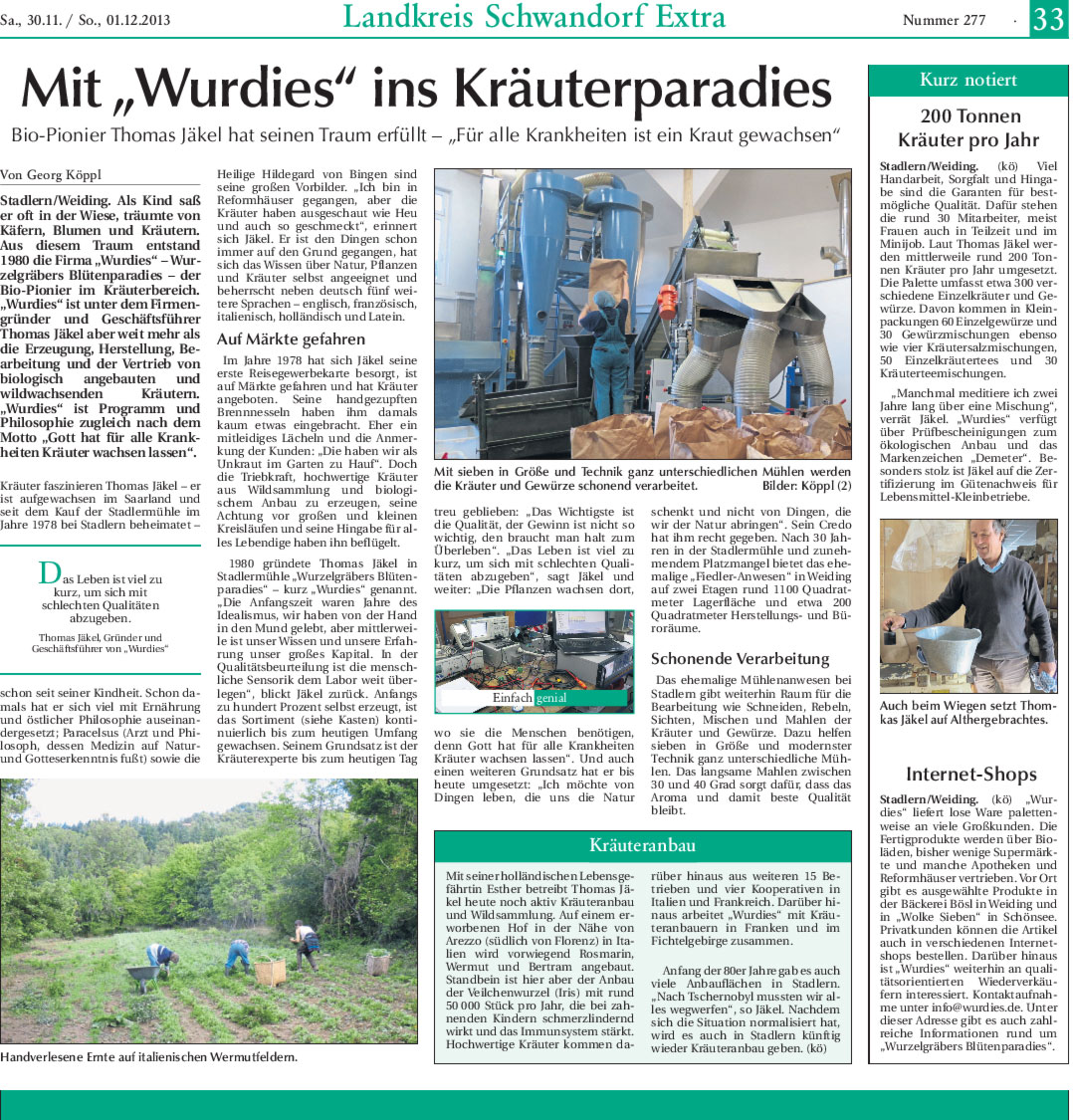 Presse: Vielen Dank an Herrn Georg Köppl und den "DER NEUE TAG - Oberpfaelzischer Kurier", die uns die Erlaubnis zur Veröffentlichung dieses Artikels gaben. ![]() Der Artikel über die Firma Wurdies zum Herunterladen. ![]() ![]() ![]() ![]() Mit freundlicher Genehmigung von Carl Dischler von der Zeitschrift Ökona. |