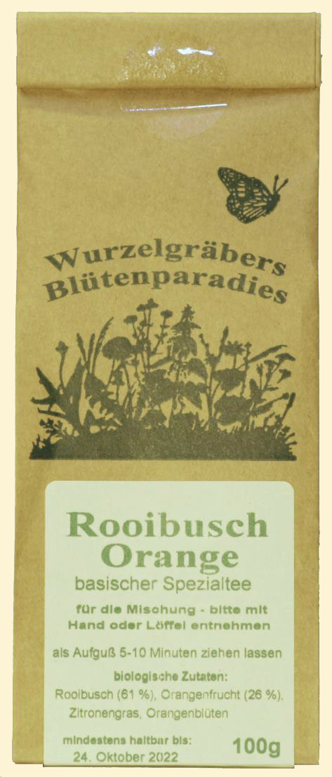 Zutaten kbA: Rooibusch (61%), Orangenstücke (30%), Zitronengras, Orangenblüten